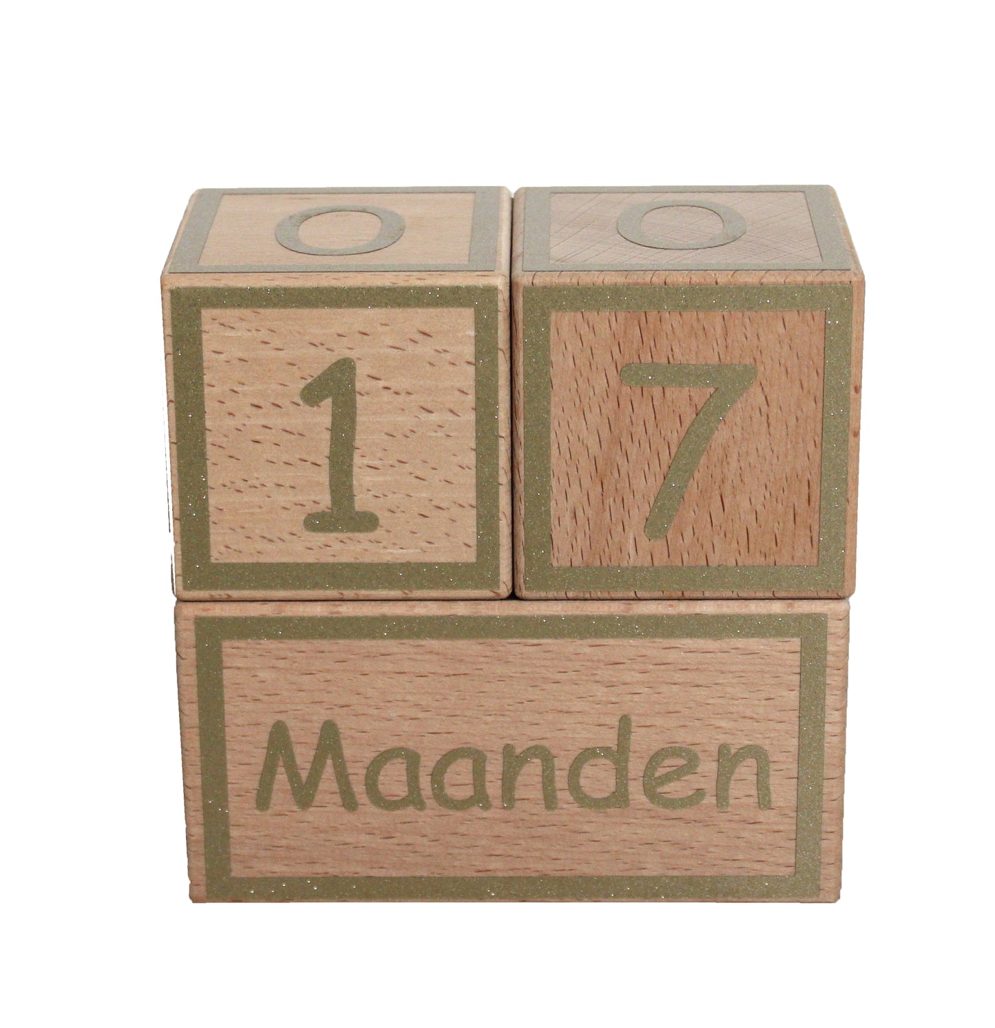 - Afmetingen product: De cijfer blokken zijn 6x6x6cm. Het tekst blok is 12x6x6cm