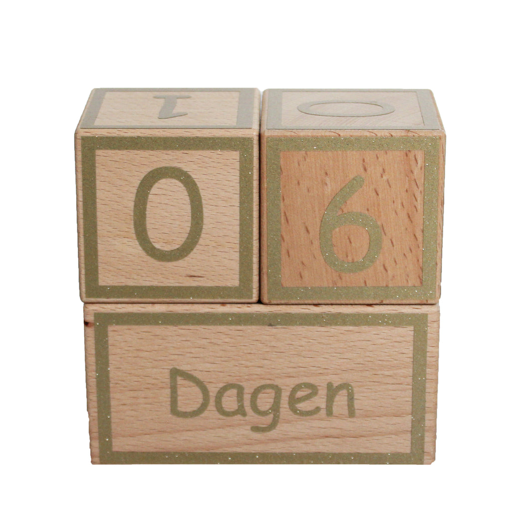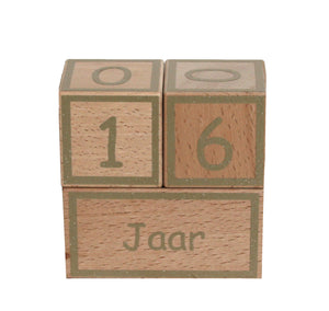 • Afmetingen product: De cijfer blokken zijn 6x6x6cm. Het tekst blok is 12x6x6cm