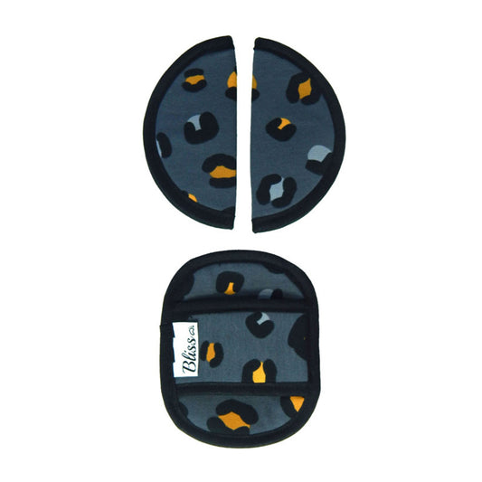 Maxi Cosi Seat Belt Padding Covers - Dark Gray with Leopard Print