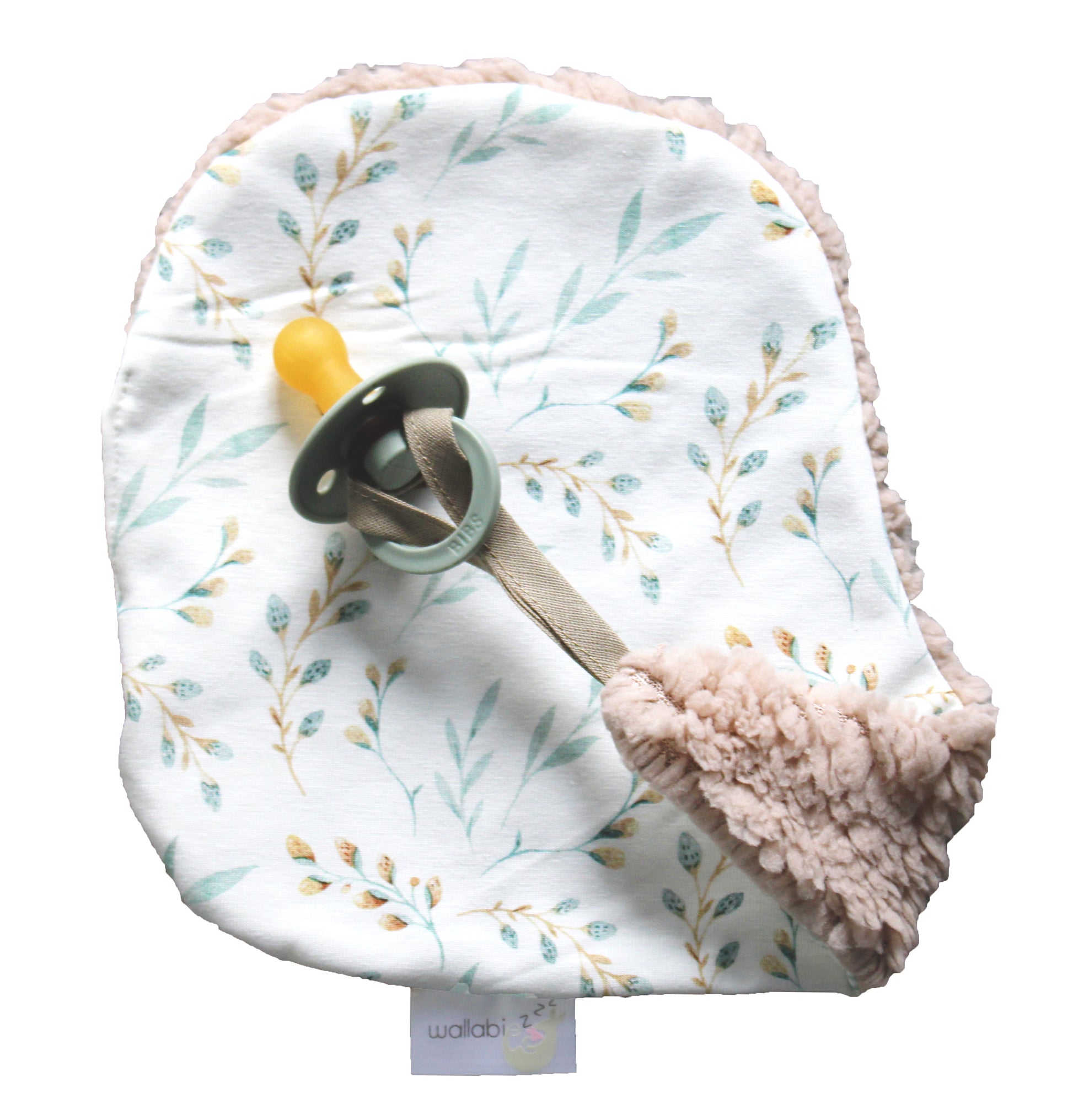 Our Wallabiezzz Pacifier Cloth combines with Bibs Pacifiers, our Wallabiezzz Maxi Cosi covers, belt padding covers, footmuff, and sun canopy (not included, need to buy them separately).
