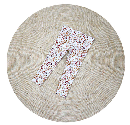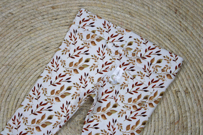 The bottom is made of elastic cotton with a beautiful print. The top edge is made of wide and sturdy elastic so that the bottom does not fall down quickly. The legs can easily be turned up, making the bottom wear longer. But our nicest detail is of course the mini small back pocket on the back of the pants!
