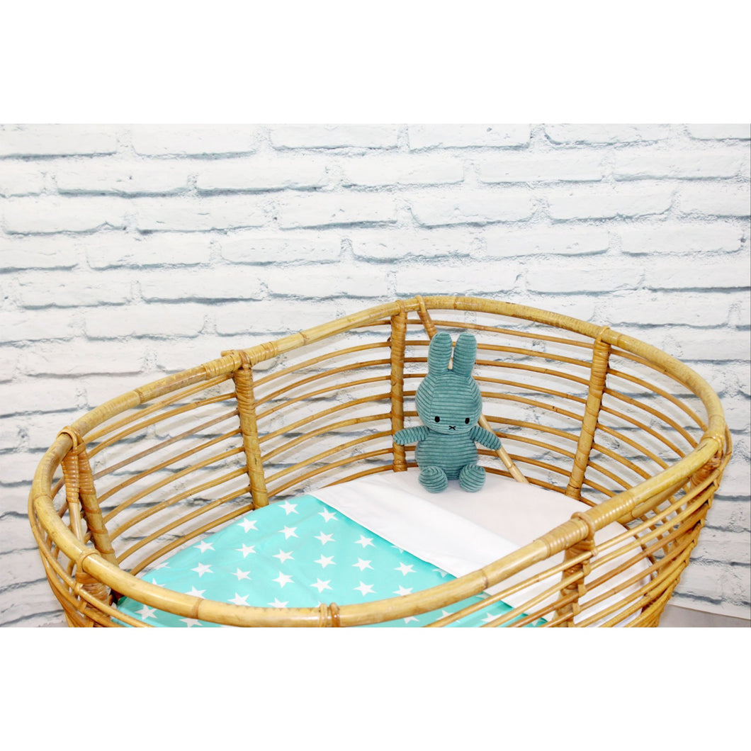This lovely Wallabiezzz baby blanket, a mint color background with white Stars pattern, is designed large enough for the baby crib. It is not lined for the winter, but if folded, it fits perfectly in the Maxi-Cosi car seat or other brands.