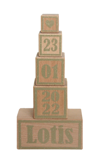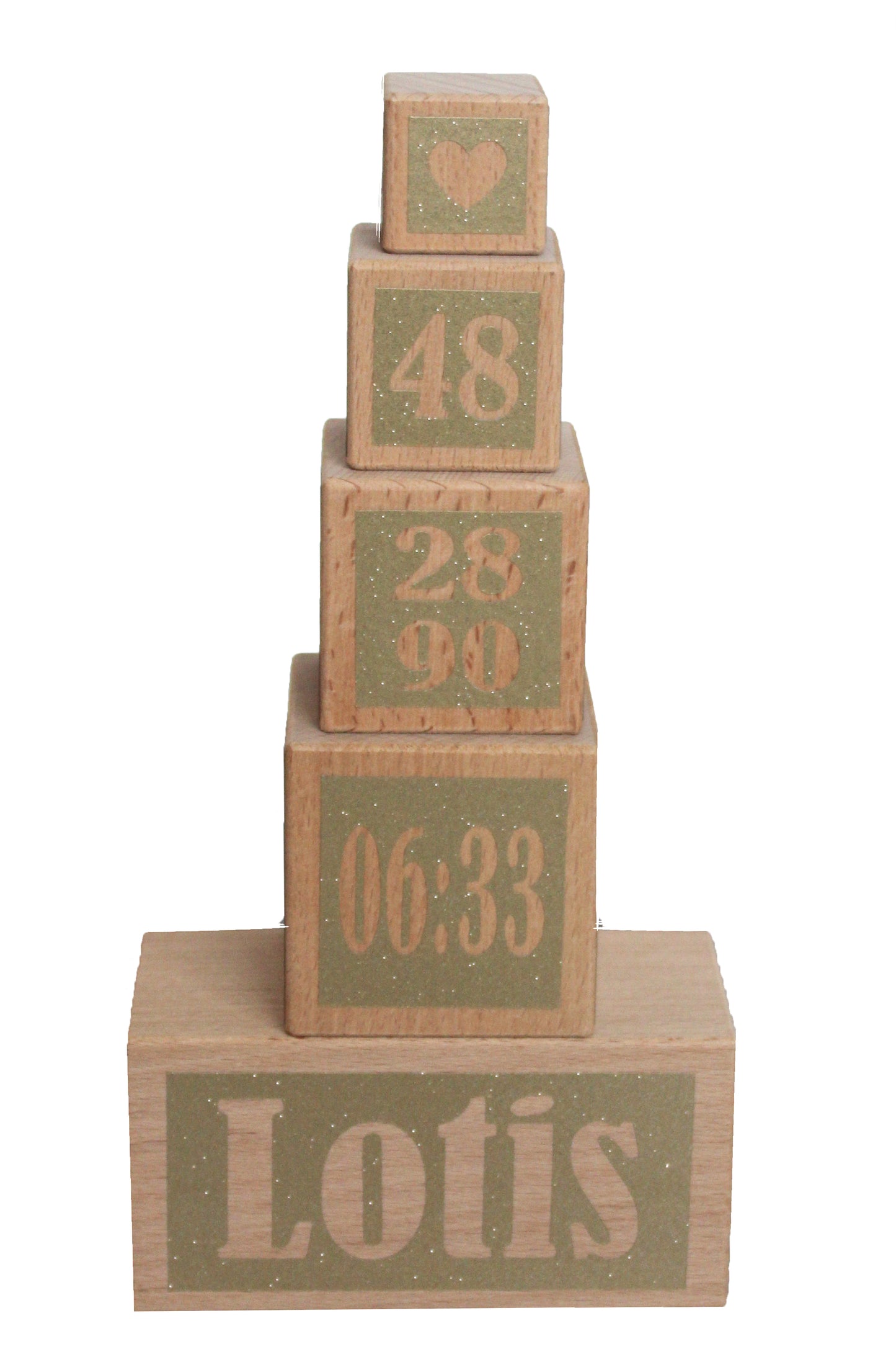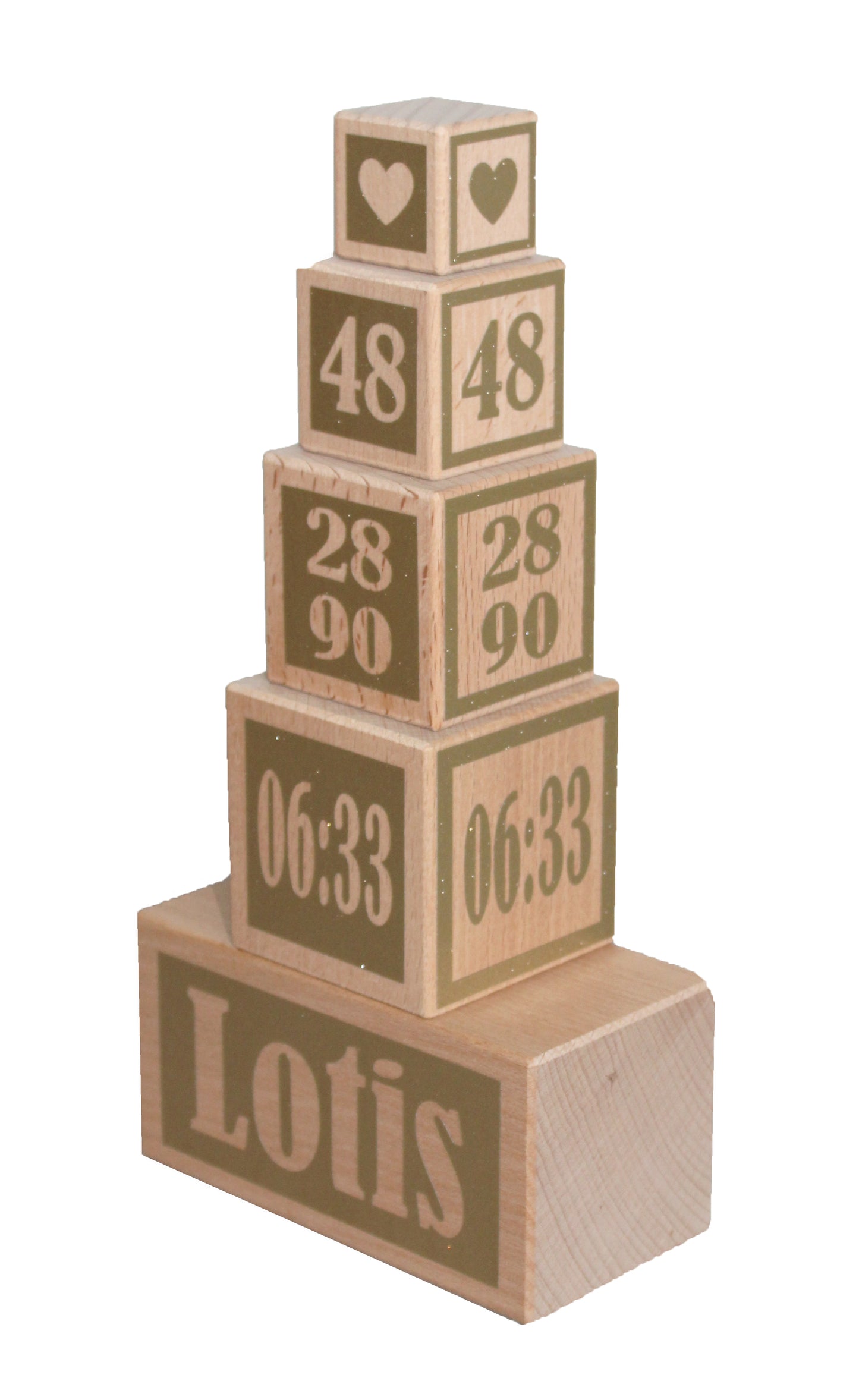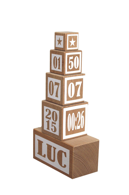 A super cool birth tower with date of birth, time of birth, height, weight and the name of your child on it. The birth tower can be fully personalized by having all the baby's birth data printed on the blocks. A particularly beautiful, personal (maternity) gift to give or receive! Or of course just nice to order for your own child. A beautiful memento of this special day and an eye-catcher in the nursery!