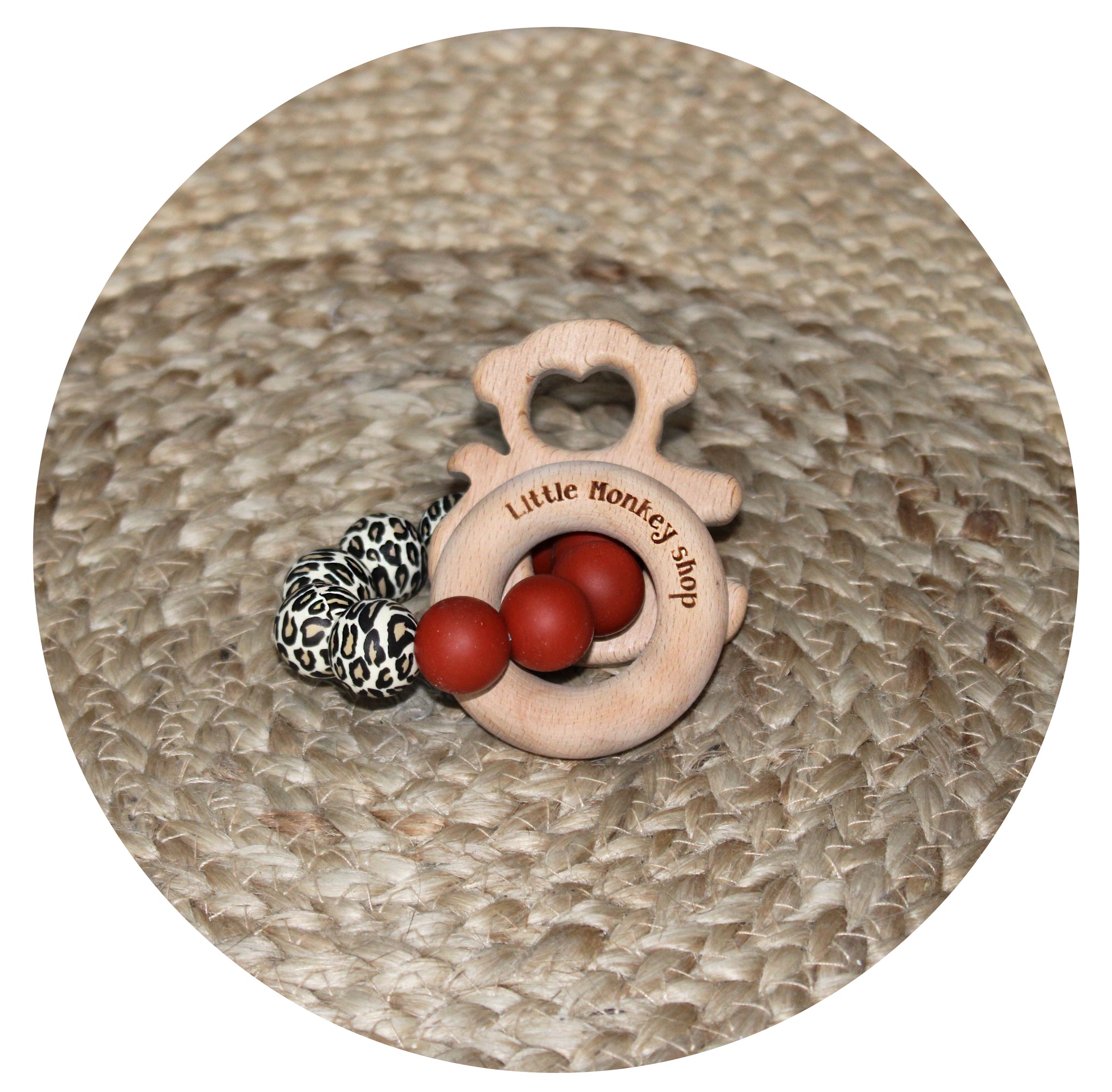 Little Monkey Shop - Teether Ring - Rust & Panther with figure
