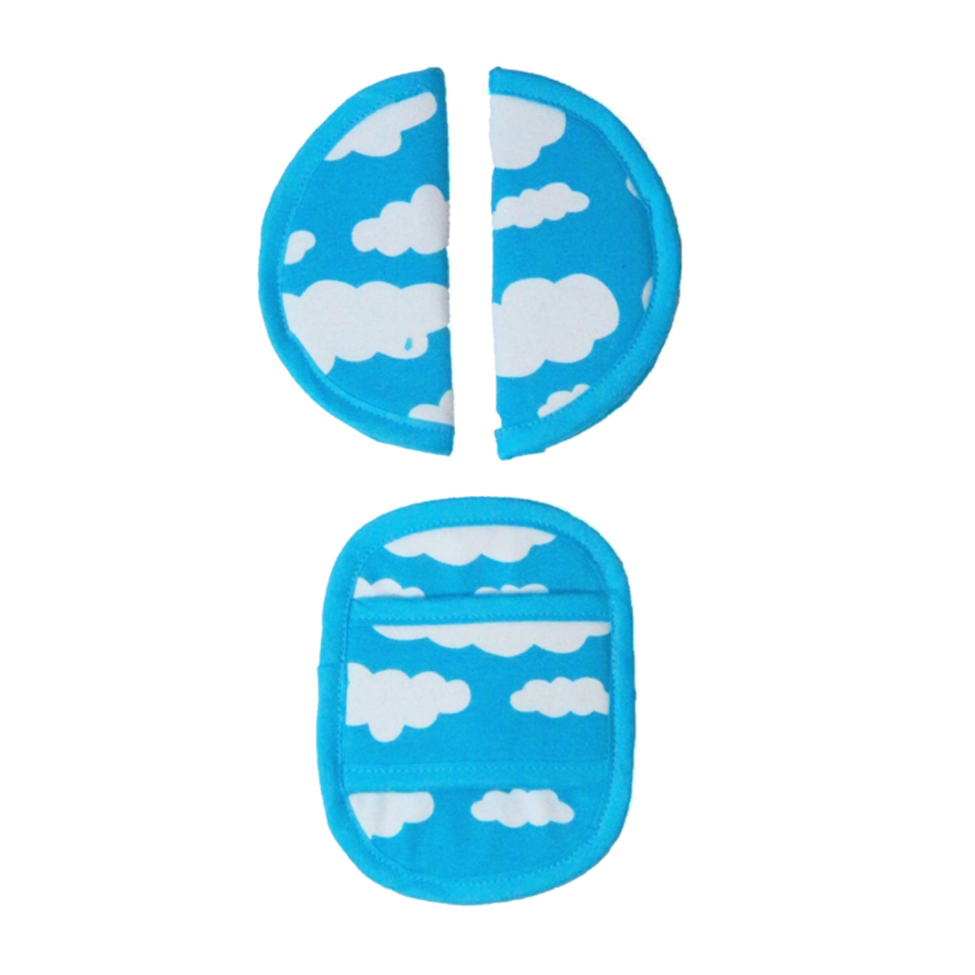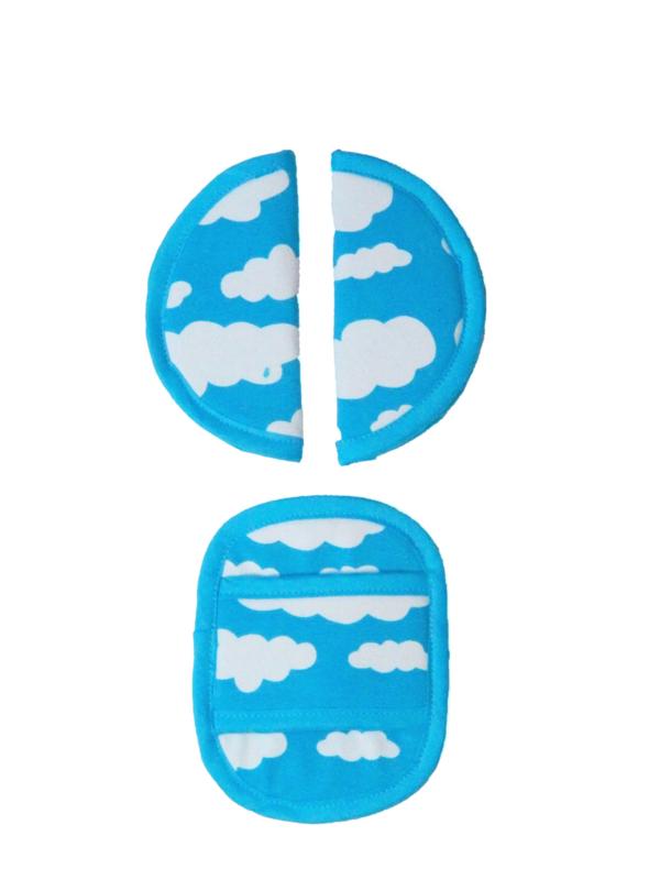 Maxi Cosi Seat Belt Pads - Aqua Blue with White Clouds
