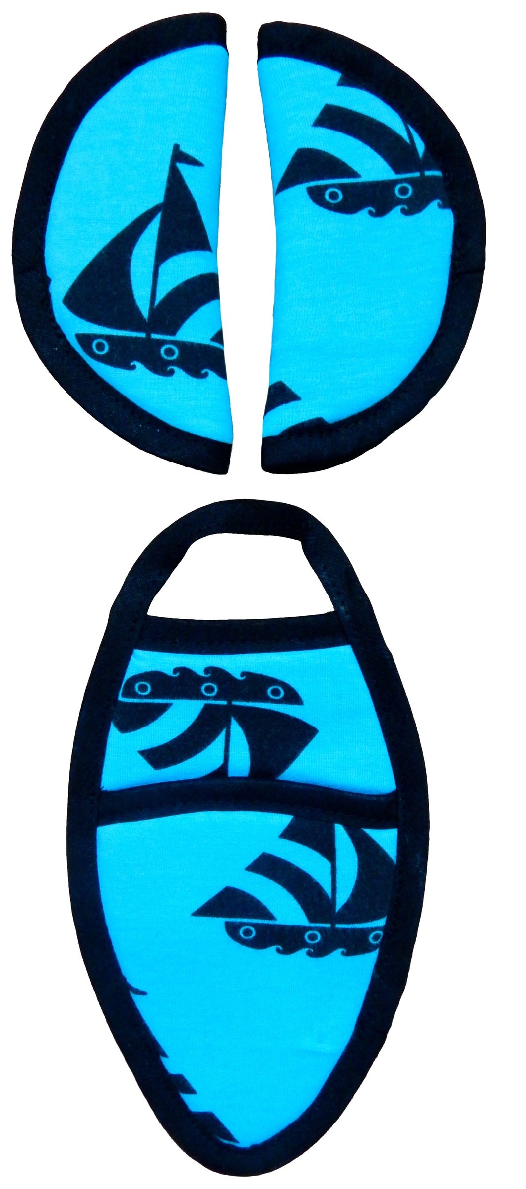 Maxi Cosi Seat Belt Pads - Blue with Black Sailboats