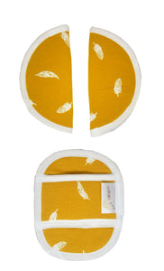 Maxi Cosi Seat Belt Pads - Yellow Ocher with White Feathers
