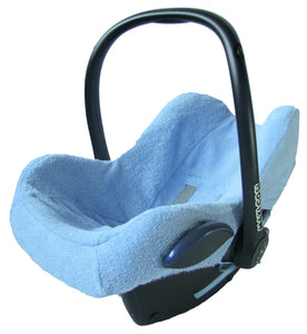This comfy Wallabiezzz cover, is a Terrycloth in light blue color , is designed for Maxi Cosi Cabriofix, Citi, or Pebble and many other car seats. This cover ensures that your car seat stays neatly clean and your child is nice and comfortable. The cover is made of 90% cotton, this material breathes and absorbs very well, so an ideal cover for both warm and cold days!