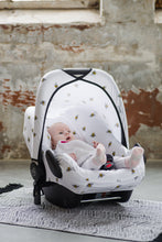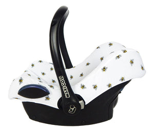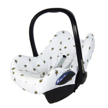This comfy Wallabiezzz cover, a white background with Bees pattern, is designed for Maxi Cosi CabrioFix, Citi, Pebble and many other car seats. This cover breathes and absorbs very well. Its elastic band fits perfectly with the Maxi Cosi.