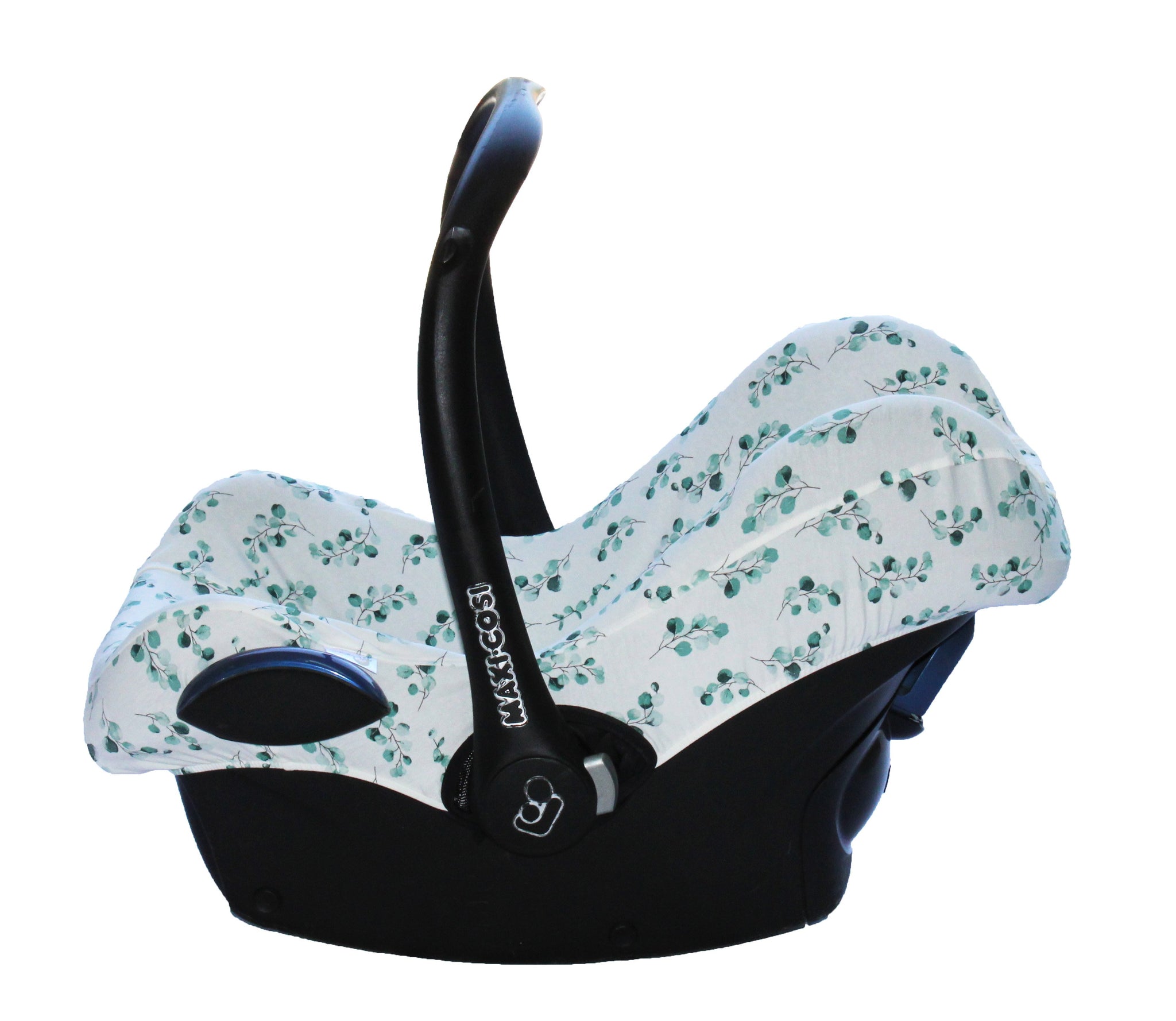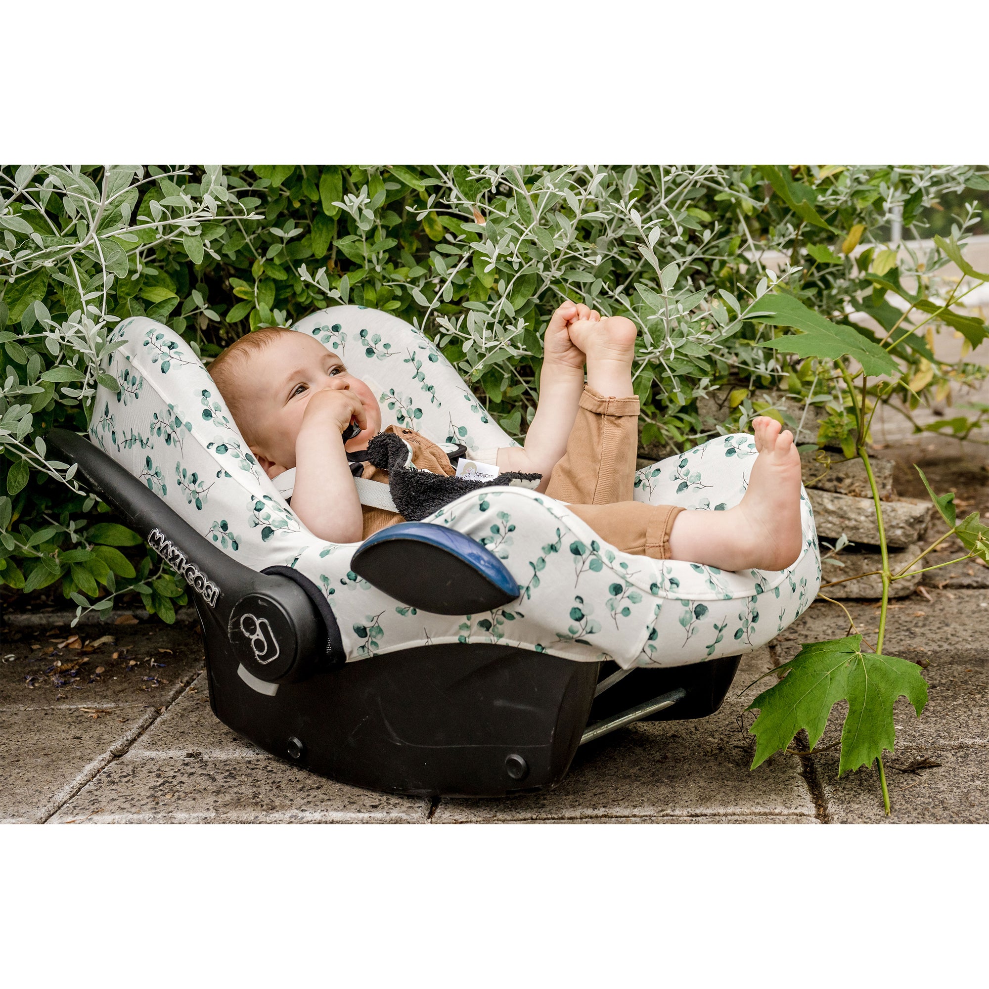 This comfy Wallabiezzz cover, with Eucalypus pattern, is designed for the Maxi-Cosi CabrioFix, Citi, Pebble and many other car seats. This cover breathes and absorbs very well. Its elastic band fits perfectly with the Maxi-Cosi.