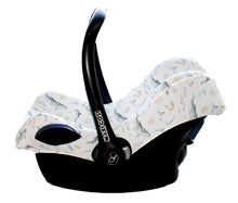 This comfy Wallabiezzz cover, a white background with Sea Animal pattern, is designed for Maxi Cosi CabrioFix, Citi, Pebble and many other car seats. This cover breathes and absorbs very well. Its elastic band fits perfectly with the Maxi Cosi.