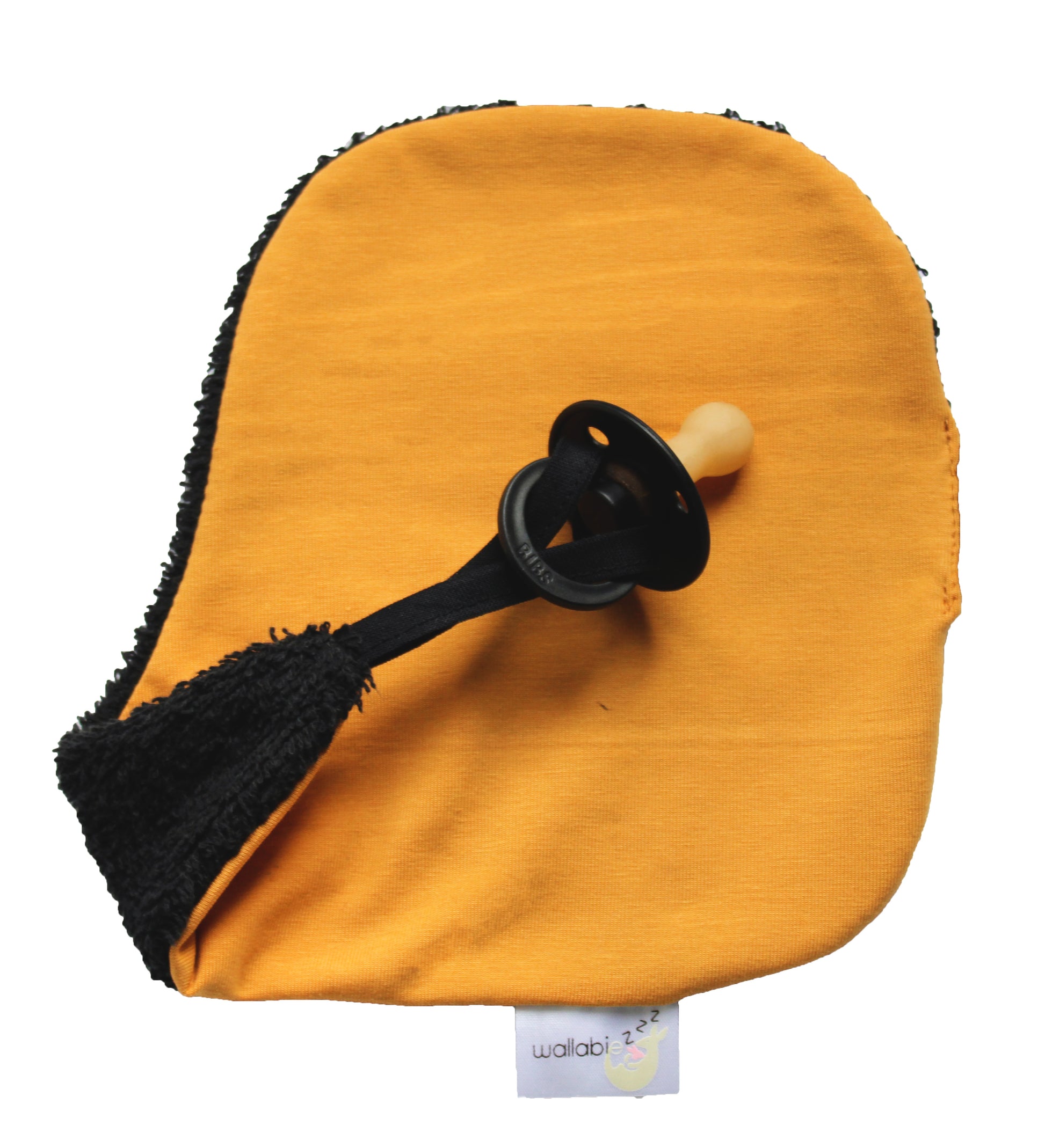 This soft Wallabiezzz pacifier cloth, a ocre color background, is designed for any pacifier. The pacifier cloth breathes and absorbs very well.