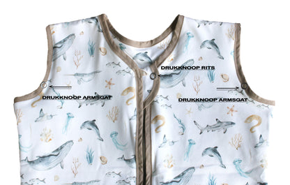Deze trendy Wallabiezzz slaapzak met een schattig zeedierenpatroon is perfect ontworpen om je kindje warm en comfortabel te laten slapen. Al vanaf de geboorte kan je baby gebruikmaken van een babyslaapzak, wat niet alleen zorgt voor een veilige slaapomgeving, maar ook voorkomt dat je kindje onder de dekens kruipt.