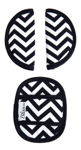 Ontdek de Maxi Cosi gordelbeschermers van Wallabiezzz met een trendy zwart/wit zigzag patroon. Deze comfortabele accessoires zijn perfect voor 3-puntsgordels en bieden extra bescherming voor de huid van je kleintje tijdens autoritjes. Verhoog het comfort en de stijl van je autostoeltje met deze leuke toevoeging!