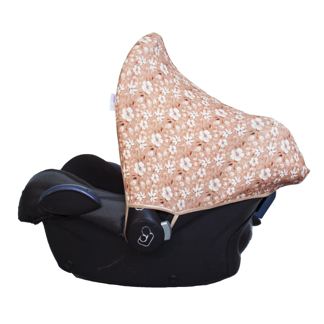 Ontdek de stijlvolle Maxi Cosi zonnekap van Wallabiezzz, voorzien van een prachtig perzikbloemen patroon. Deze trendy kap biedt niet alleen een vrolijke uitstraling, maar beschermt ook je kleintje tegen schadelijke UV-straling. Perfect voor zonnige wandelingen! Laat de zon schijnen terwijl je kindje veilig en comfortabel blijft in zijn of haar Maxi Cosi.