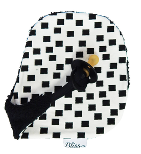 Ontdek het speendoekje van Wallabiezzz in een stijlvolle witte stof met zwarte vierkantjes. Dit praktische en trendy doekje houdt de speen altijd binnen handbereik en voorkomt dat hij op de grond valt. Gemaakt van hoogwaardige, zachte materialen, is het perfect voor de gevoelige huid van je baby. Een must-have accessoire voor elke ouder!